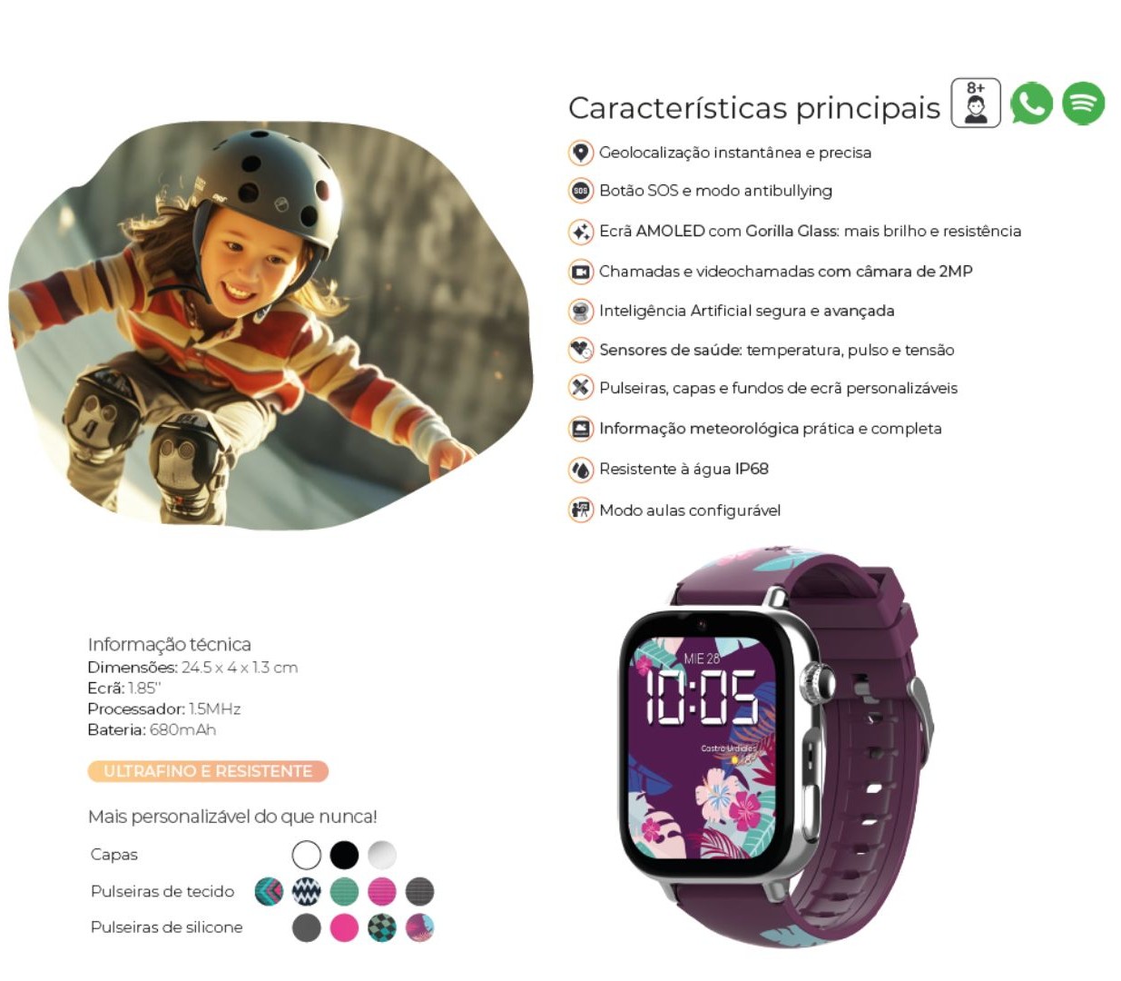 Equipado com inteligência artificial segura, botão SOS, resistência com Gorilla Glass e um modo escola configurável, o SaveWatch Plus 2 junta o melhor da tecnologia a um design jovem e funcional. Já não se trata apenas de estar ligado, mas sim de o fazer com estilo, segurança e confiança.